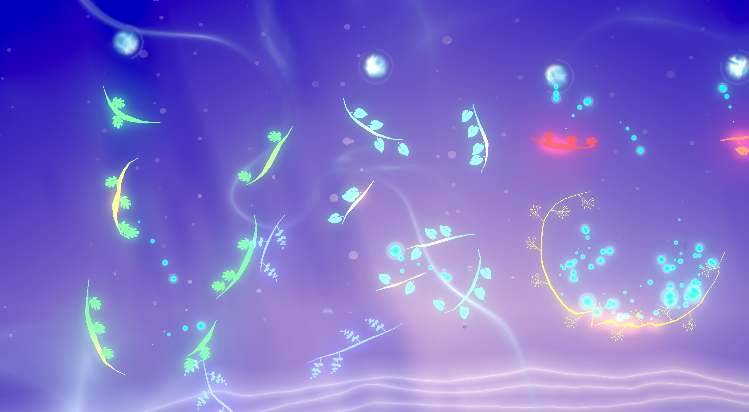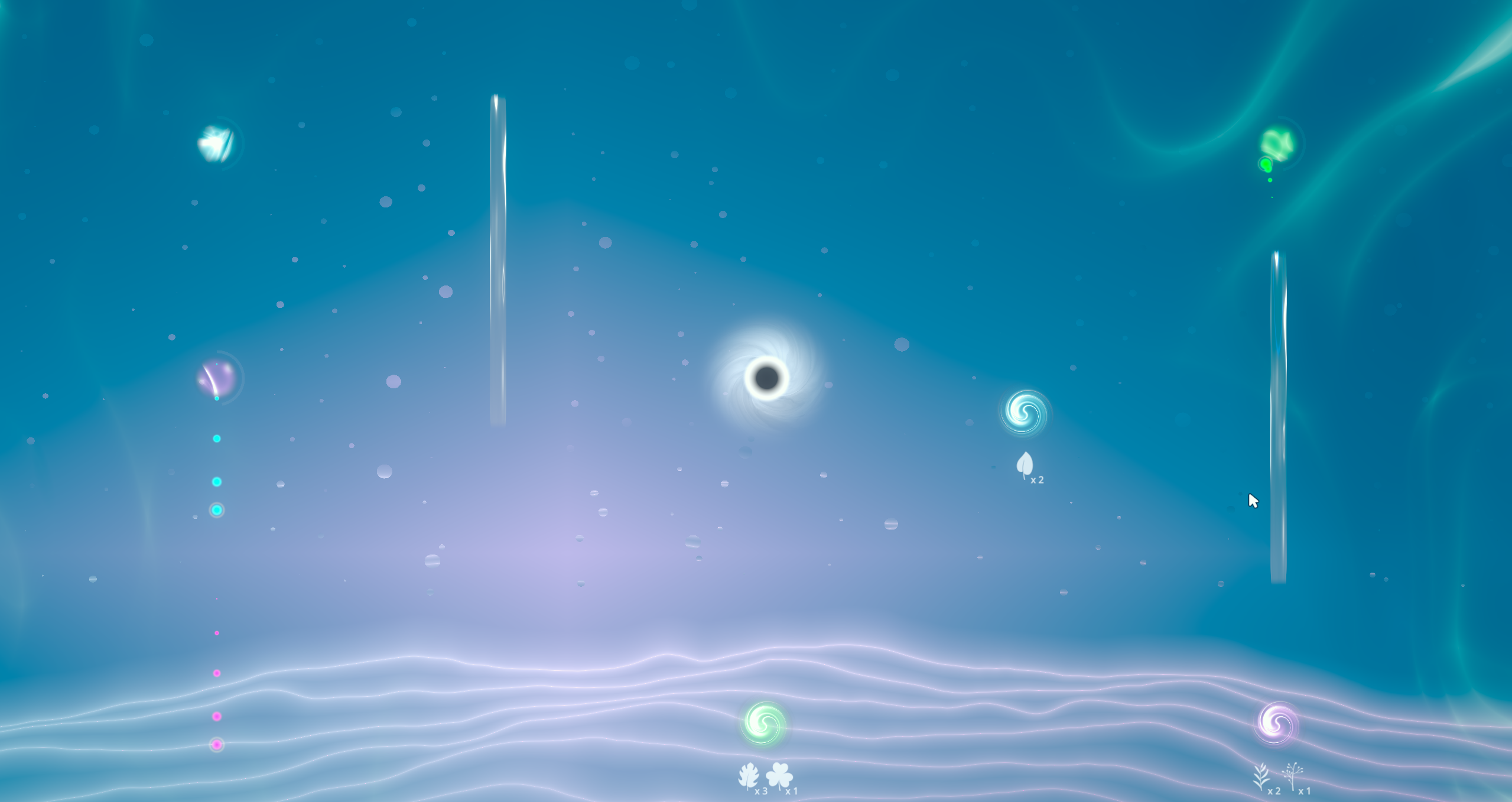 Take the sounds you've unlocked and make them your own. Place dewdrop spawners, set their rate, and draw flowing vines to craft intricate musical arrangements. As physics takes over, droplets bounce and slide along your creations, generating melodies automatically. No music theory knowledge needed, as your creativity shapes the sound.