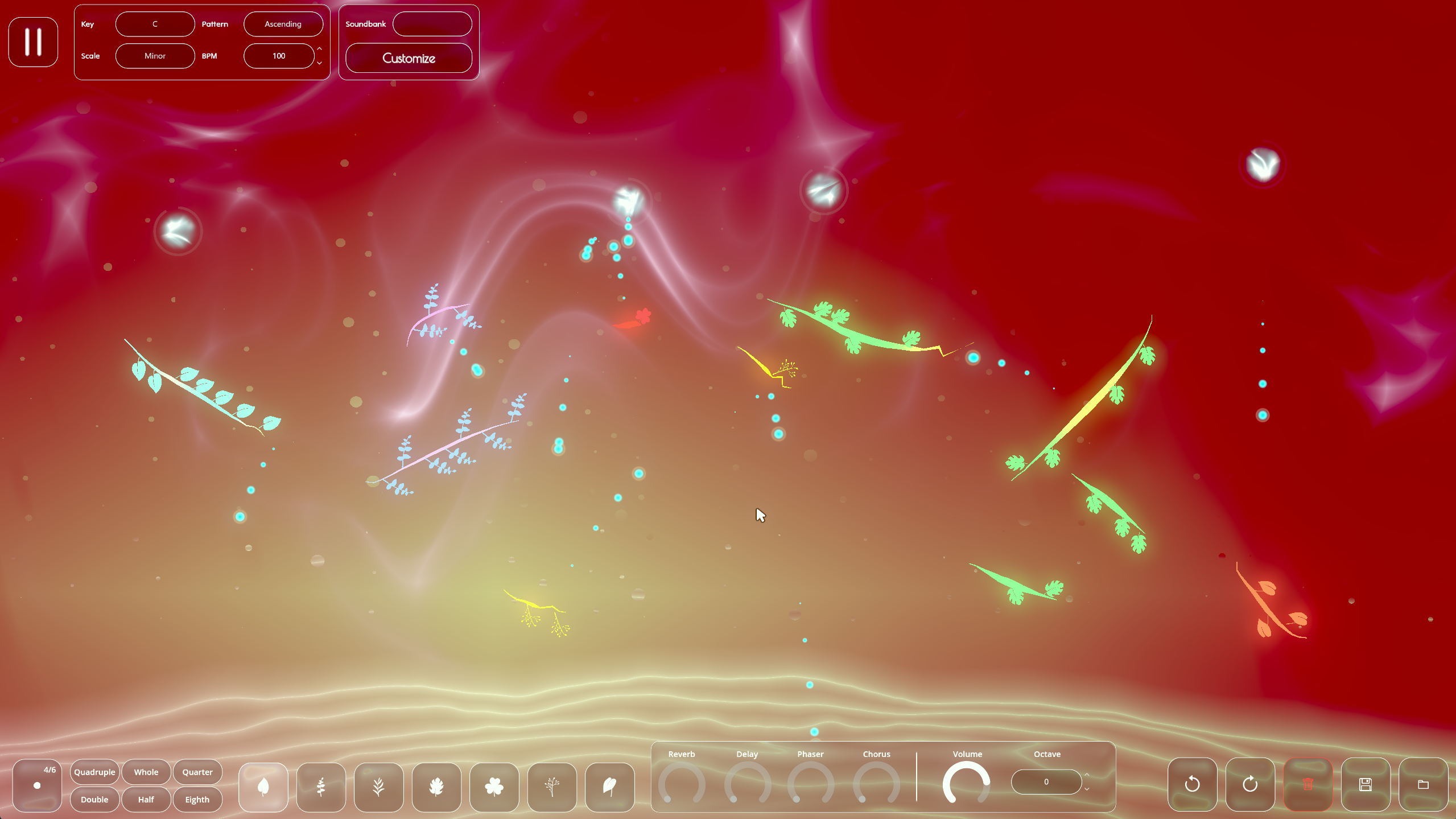 Shape your sonic palette by assigning distinct instruments to each vine, from gentle pianos to shimmering synths. Apply effects like reverb and delay to add depth, or import your own samples to create entirely custom soundscapes.